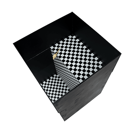 Before engaging into complex visual assessment tests, the Visual Cliff is a classic device to evaluate the presence of severe visual impairments. It uses a glass or plexiglass surface that creates the illusion of a sudden drop-off, thanks to the fact that the surface is divided into two sections. One section is at a higher level than the other, creating a visual cliff. The animal can see the difference in depth between the two sections due to the clear surface.